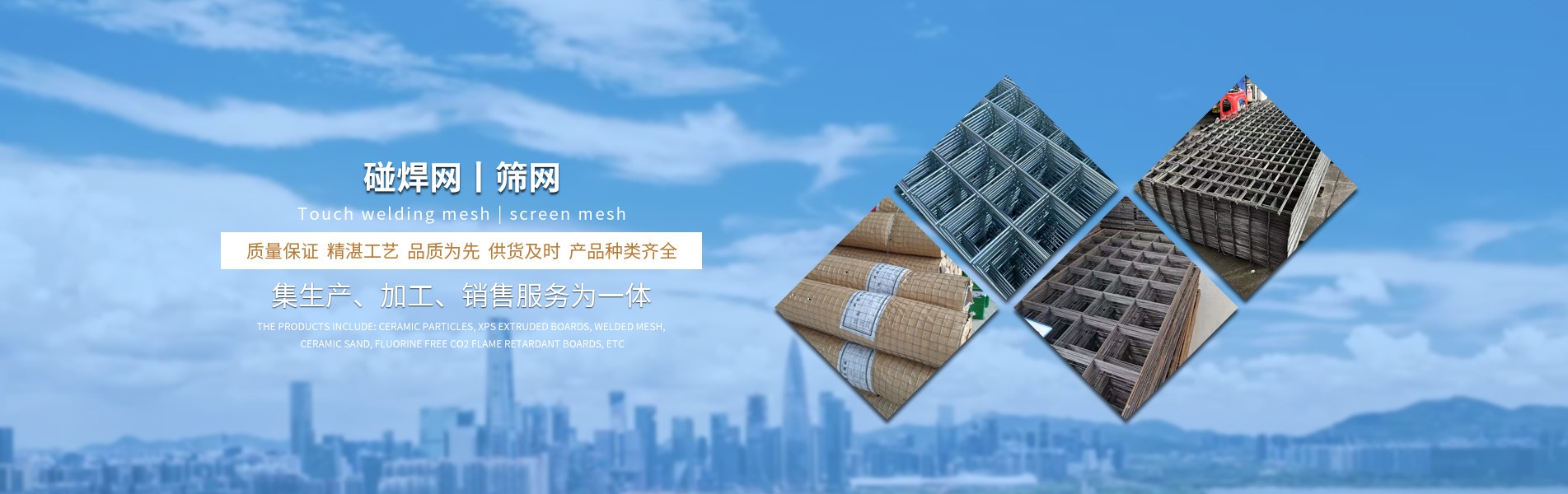 產品有:陶粒、XPS擠塑板、陶砂、無氟co2阻燃板、擠塑復合板。配送材料有:碰焊網、專用膠水、泡沫板、巖棉板、玻璃棉氈、珍珠巖、聚酯無紡布、纖維網格布等。